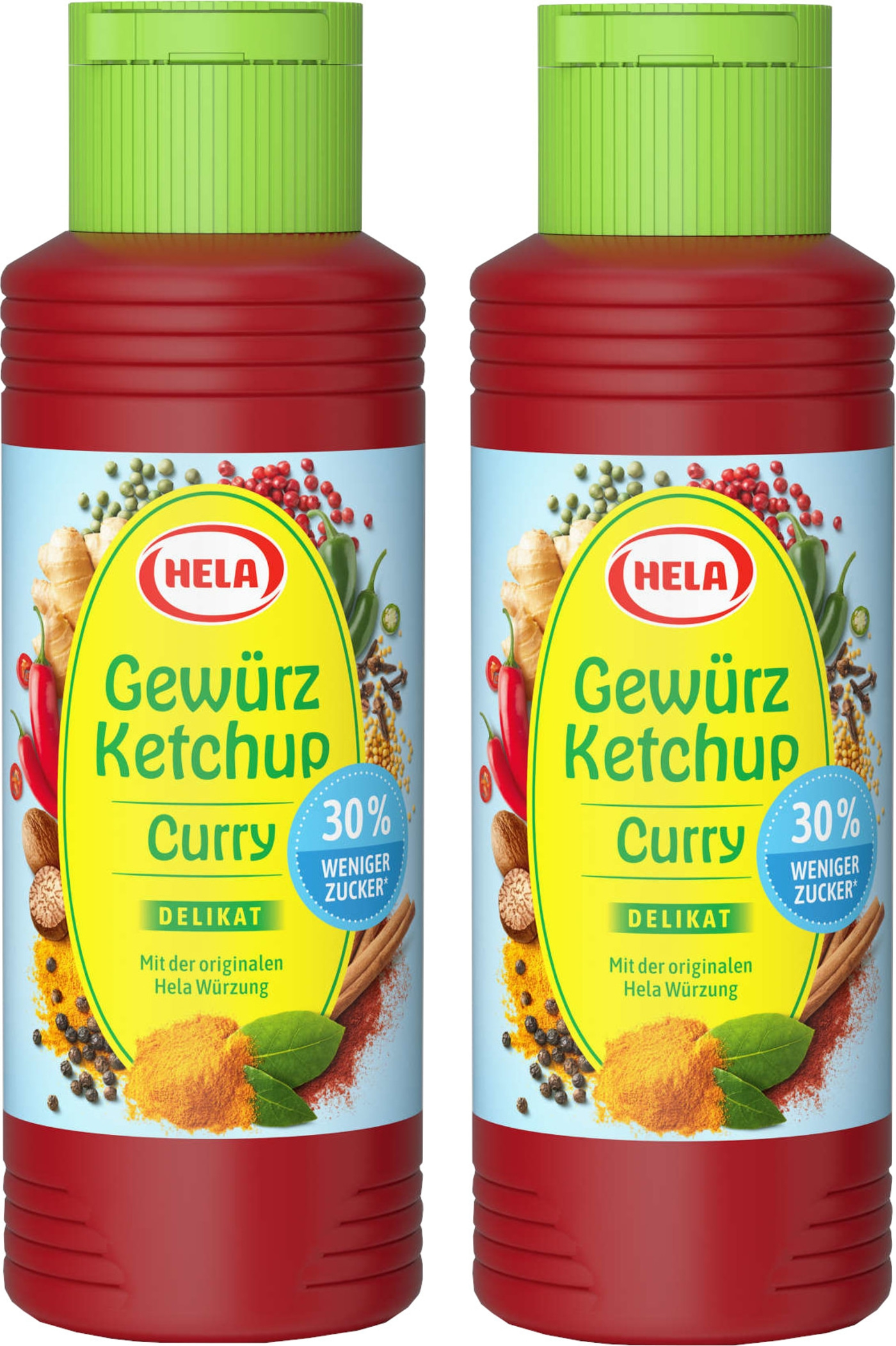 - 2 x 300 ml Hela Ketchup Curry delikat 30% weniger Zucker