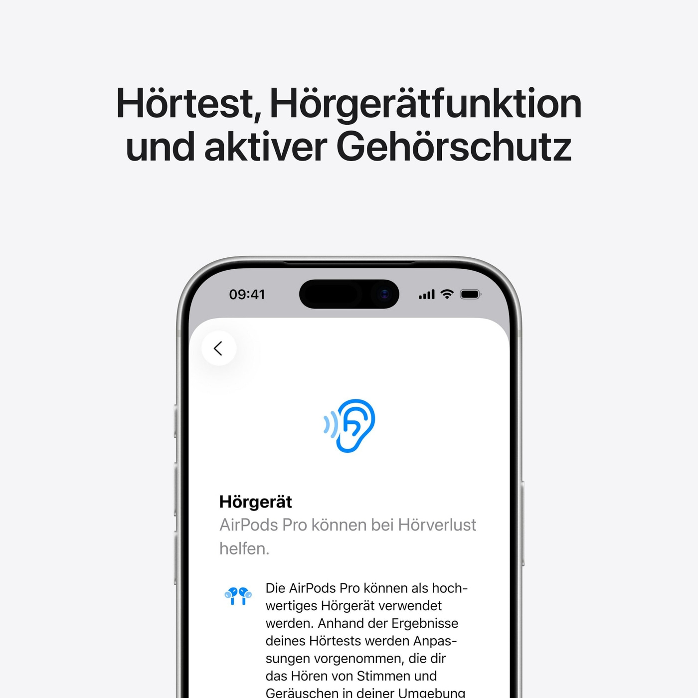 Hörtest und Hörgerät. Mit einem besseren Sitz und stärkerer Geräuschunterdrückung kannst du jetzt einen wissenschaftlich anerkannten Hörtest bei mehr verschiedenen alltäglichen Hintergrundbedingungen durchführen – direkt bei dir zu Hause. Und bei leicht bis mäßig eingeschränktem Hörvermögen kannst du die verbesserte Hörgerätfunktion überall nutzen, wo du gerade bist.