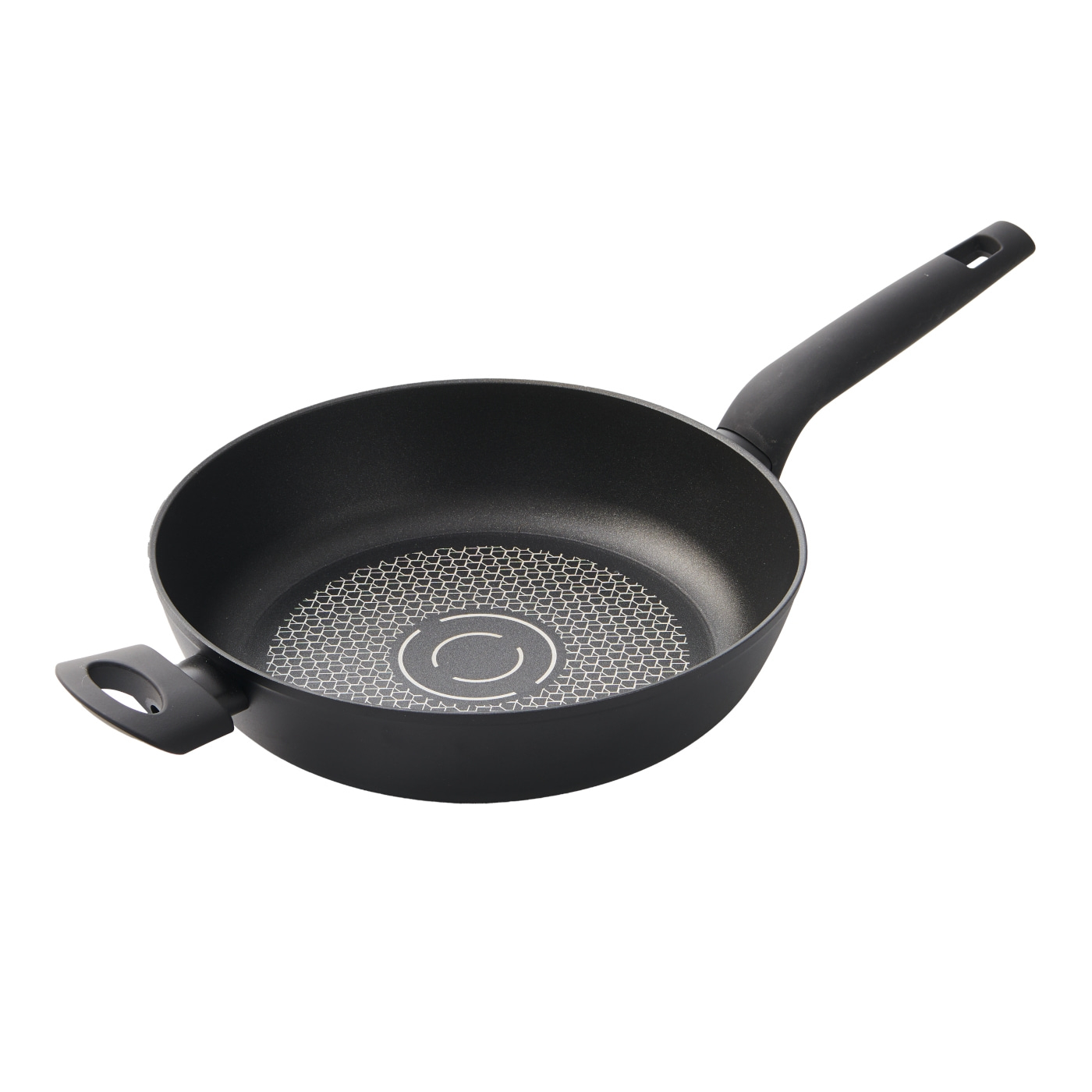Der Zusatzgriff sorgt für sicheres Handling, auch wenn die Pfanne voll ist. Hitzebeständige Griffe (bis 130 °C) machen sie zudem backofentauglich. Dank Öldosier-Ringen im Boden dosierst du Fett ganz einfach und kochst bewusst gesund. Die Antihaft-Beschichtung verhindert Ankleben selbst bei wenig Öl.