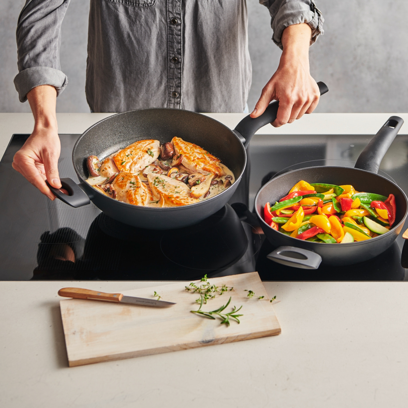 Dein praktischer Allrounder für den Alltag. Der 7 cm hohe Rand erleichtert Wenden, Rühren und Anbraten – ideal für Gemüsepfannen, Rührbraten oder Käsespätzle.