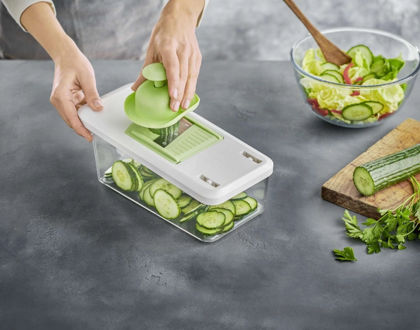 - Blitzschnell große Mengen Gemüse in verschiedene Formen schneiden