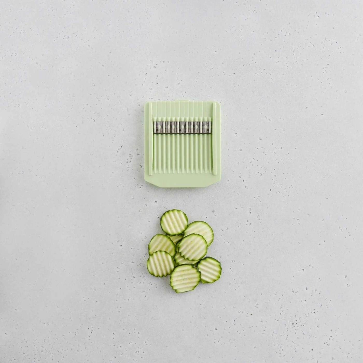 Für maximale Sicherheit sorgt beim Gemüseschneider der dazugehörige Fingerschutz. Dieser drückt das beim Hobeln kleiner werdende Gemüse oder Obst auf die Edelstahlklingen, sodass du es ohne Verletzungsgefahr bis zum letzten Rest zerkleinern kannst. Gerade bei kleineren Stücken wie Zwiebeln oder Kartoffeln ist dieser Fingerschutz unverzichtbar und garantiert sicheres Arbeiten mit dem Gemüseschneider. So brauchst du Gemüse und Obst komplett auf und musst nichts wegwerfen.
