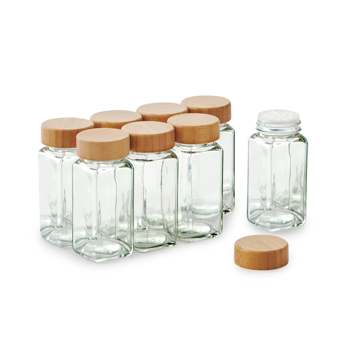 Gewürzstreuer, Glas mit Bambusdeckel - 8 Stück