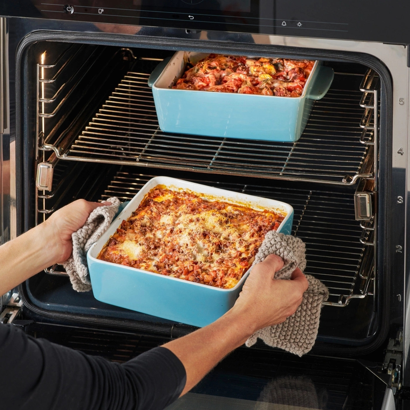 Einmaliger Aufwand, zweifacher Genuss! Wenn du schon mal am Herd stehst, kann es durchaus Sinn ergeben, gleich die doppelte Rezeptmenge an Béchamelsauce, Bolognese-Sauce oder Gemüsefüllung zuzubereiten. Dank dem passenden Deckel zur Gratinform kannst du deine Wunsch-Lasagne entweder sofort oder am nächsten Tag backen und genießen und die zweite fertig vorbereitet zudecken und tiefkühlen.