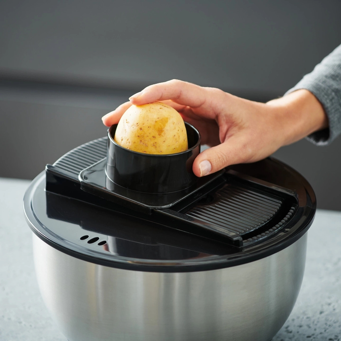 - Hobeln und raspeln direkt in die Schüssel