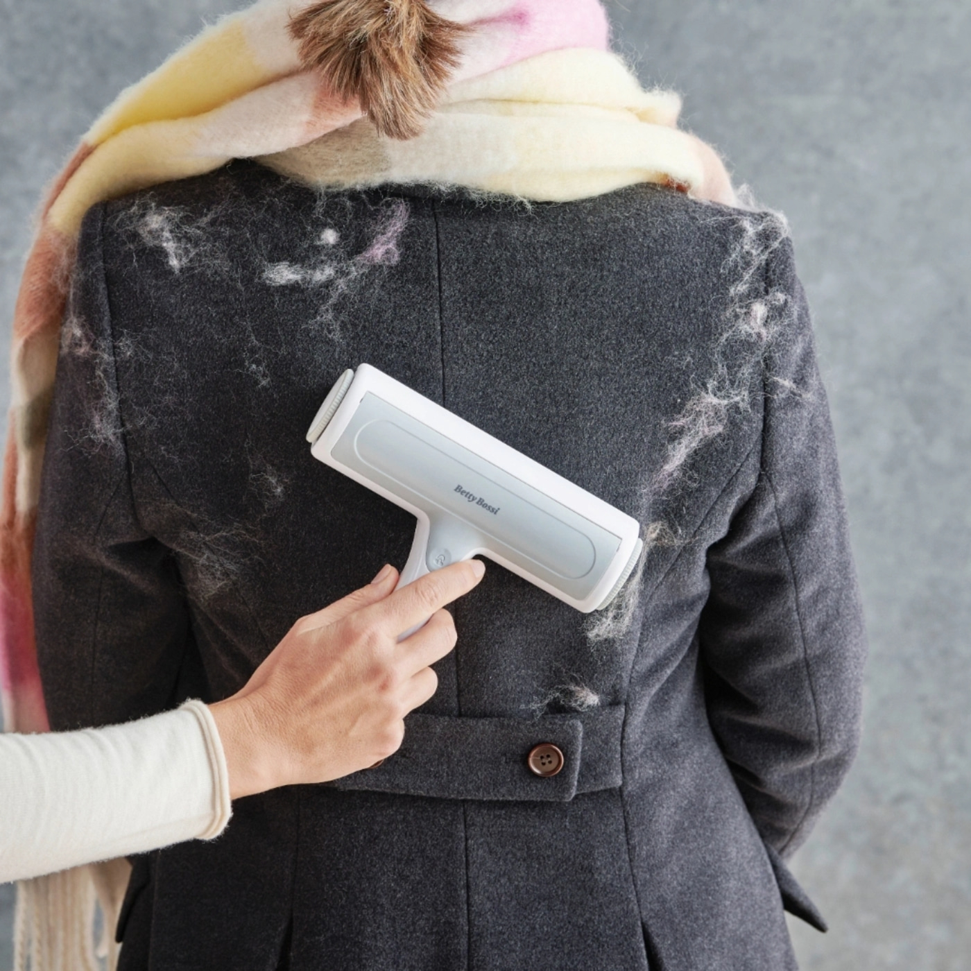 Mit der selbstreinigenden Fusselrolle von Betty Bossi entfernst du Fusseln, Tierhaare und Staub zackig und zuverlässig – ganz ohne Einweg-Kleberollen. Das Gerät ist sofort einsatzbereit, liegt dank rutschfestem Griff gut in der Hand und begleitet dich im Alltag vom Kleiderschrank bis zum Sofa. Nachhaltig, hygienisch und immer wieder verwendbar: so bleibt alles im Nu wieder sauber und gepflegt.