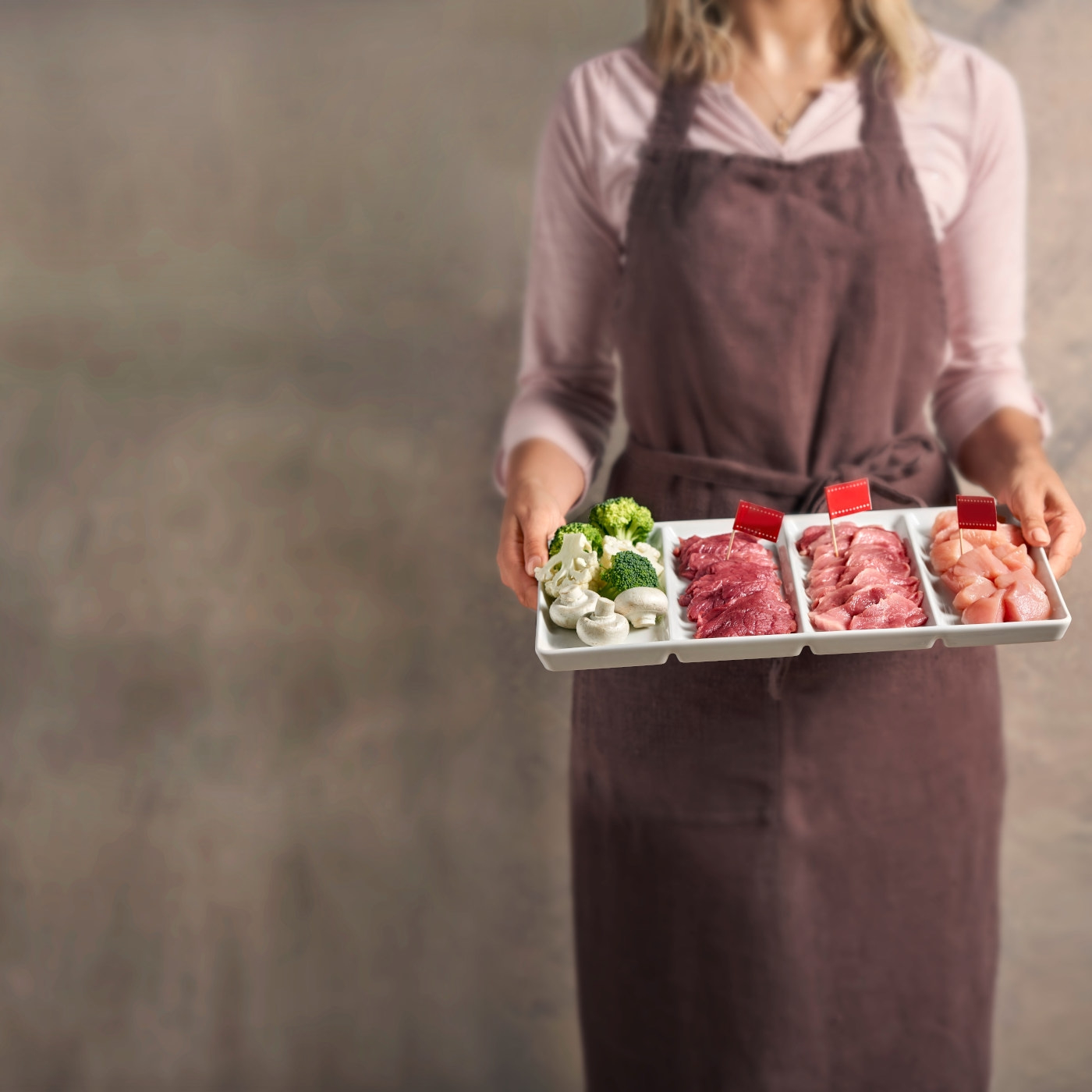 Endlich gibt es eine Lösung für das hygienische Servieren von Fondue Chinoise! Auf dieser hochwertigen Porzellanplatte mit vier Unterteilungen bleiben die einzelnen Fleischsorten sicher voneinander getrennt, sodass es zu keinen heiklen Vermischungen kommt.
