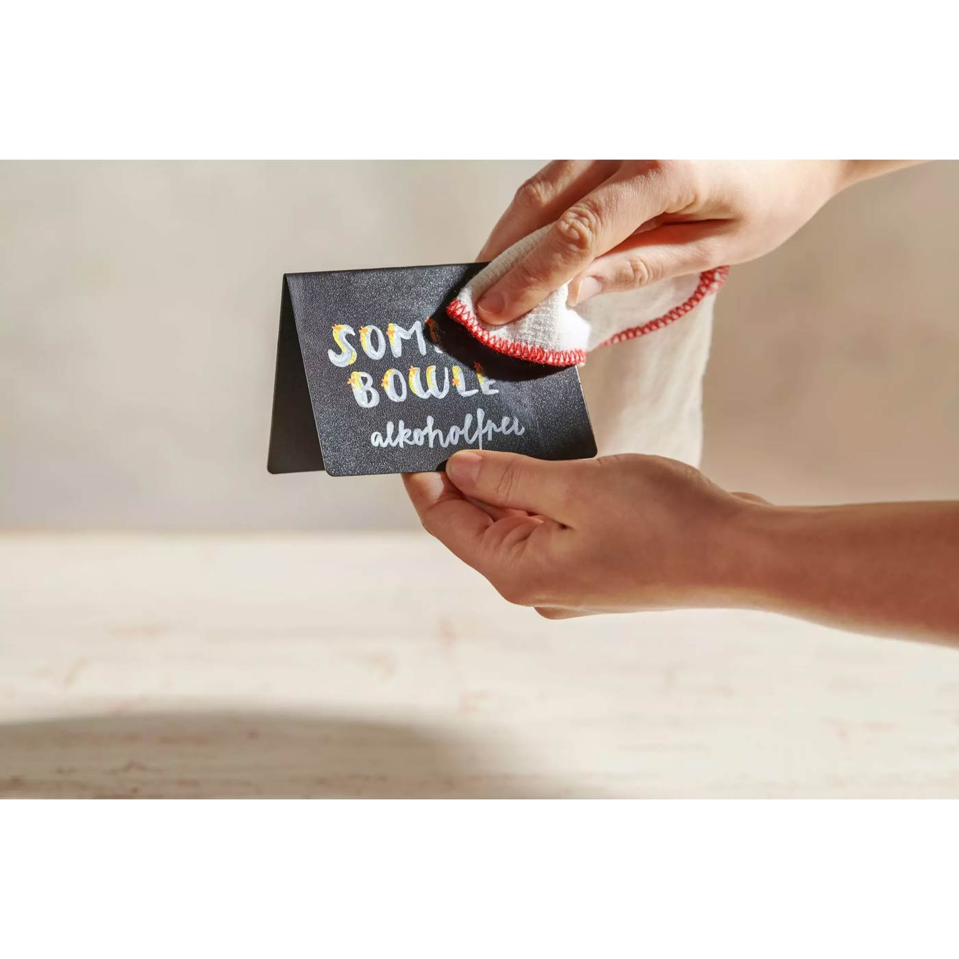 Das Set enthält 10 hochwertige Tischaufsteller sowie 10 verschiedenfarbige Stifte. Die spezielle Oberfläche ermöglicht ein einfaches Beschriften – sei es mit Namen, Menüangaben oder kreativen Botschaften. Falls du eine Änderung vornehmen möchtest, lässt sich die Schrift ganz leicht mit einem feuchten Tuch abwischen. So kannst du die Namensschilder immer wieder neu verwenden.