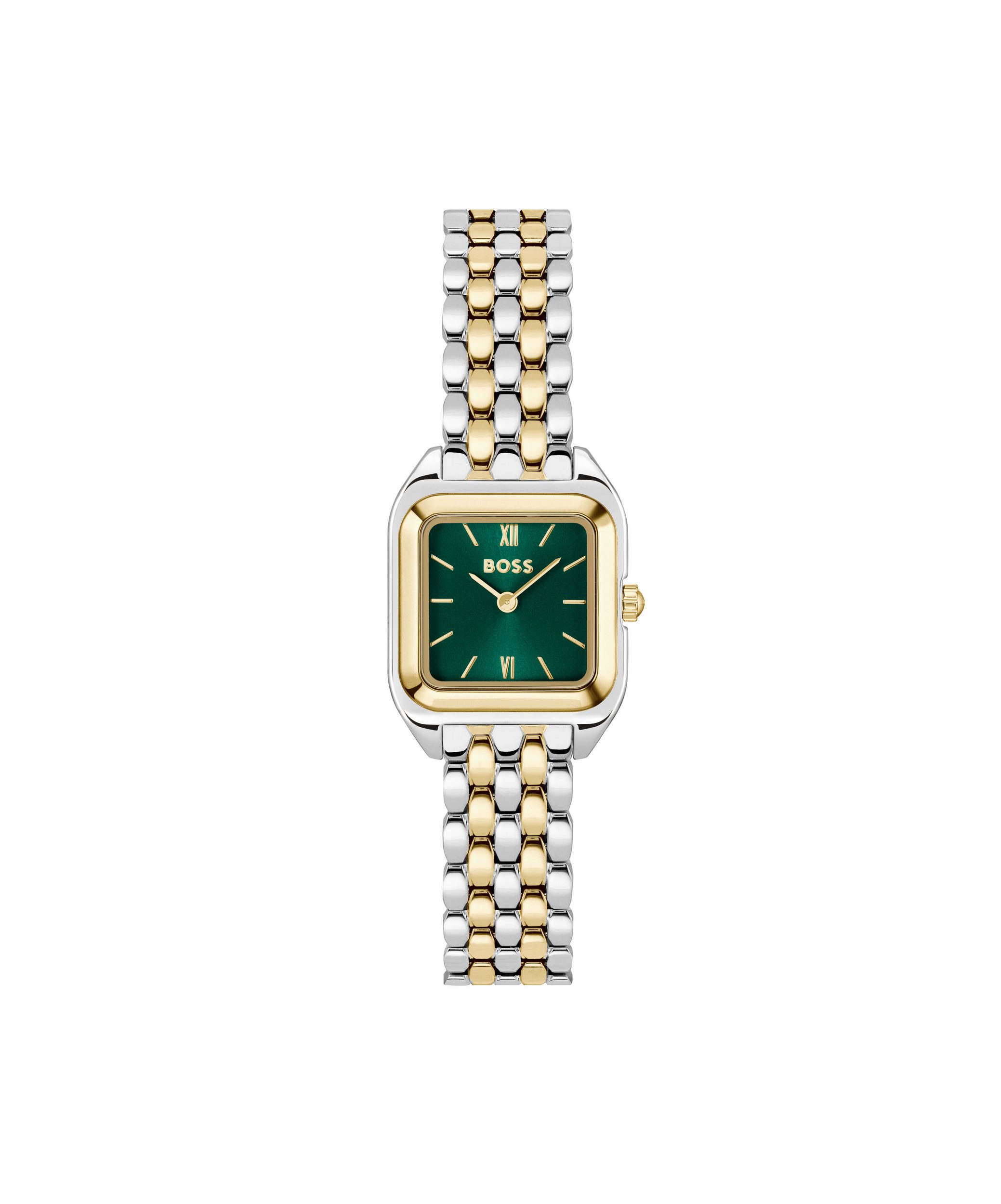 BOSS Damen Uhr 1502822 Silber Grün Edelstahl Analog Quadratisch Bicolor 22mm