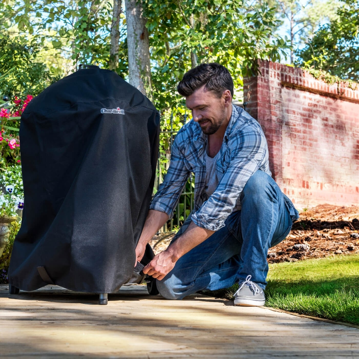 Die Char-Broil® Kettleman® Tru-Infrared™ Wetterschutzhaube für Holzkohlegrills wurde speziell für Kettleman-Holzkohlegrills entwickelt. Sie besteht aus einem robusten, strapazierfähigen Polyestergewebe, das den Grill vor den Elementen schützt, und hat Verschlussriemen, um die Wetterschutzhaube am Grill zu befestigen.