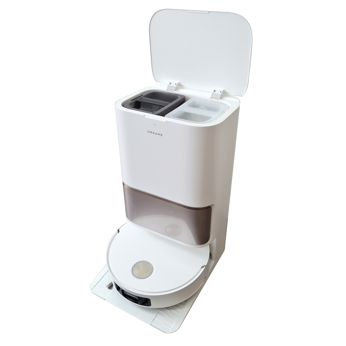 - Vollautomatische Basisstation: Automatische Wischmoppreinigung mit 75 °C heißem Wasser, Heißlufttrocknung, Staubentleerung für bis zu 100 Tage