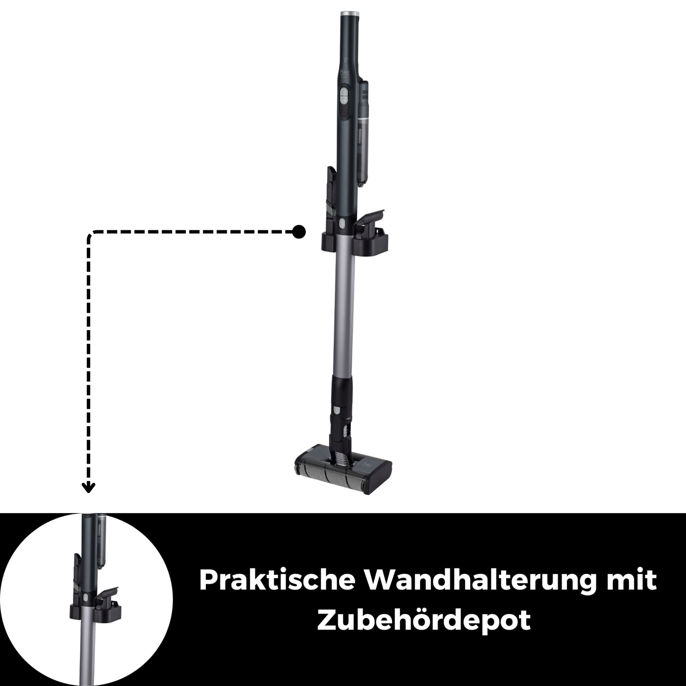 UMFANGREICHES ZUBEHÖR: Der Akkusauger wird mit einer 2-in-1 Fugen- und Möbelbürste, Polsterdüse, einem elektrischen Rohr und einer Allround-Gleitbürste geliefert – inkl. praktischer Wandhalterung