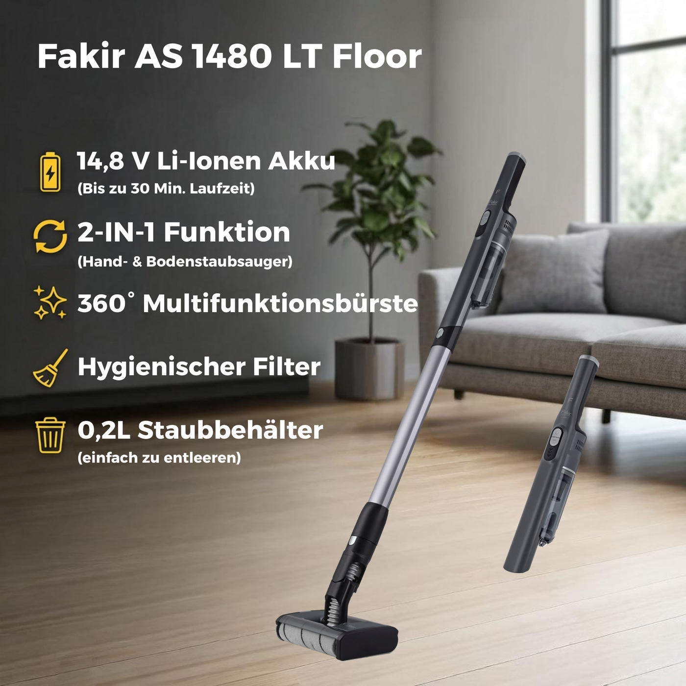 FAKIR Akku-Staubsauger 2in1 Handstaubsauger Stielsauger premium AS 1480 LT Floor