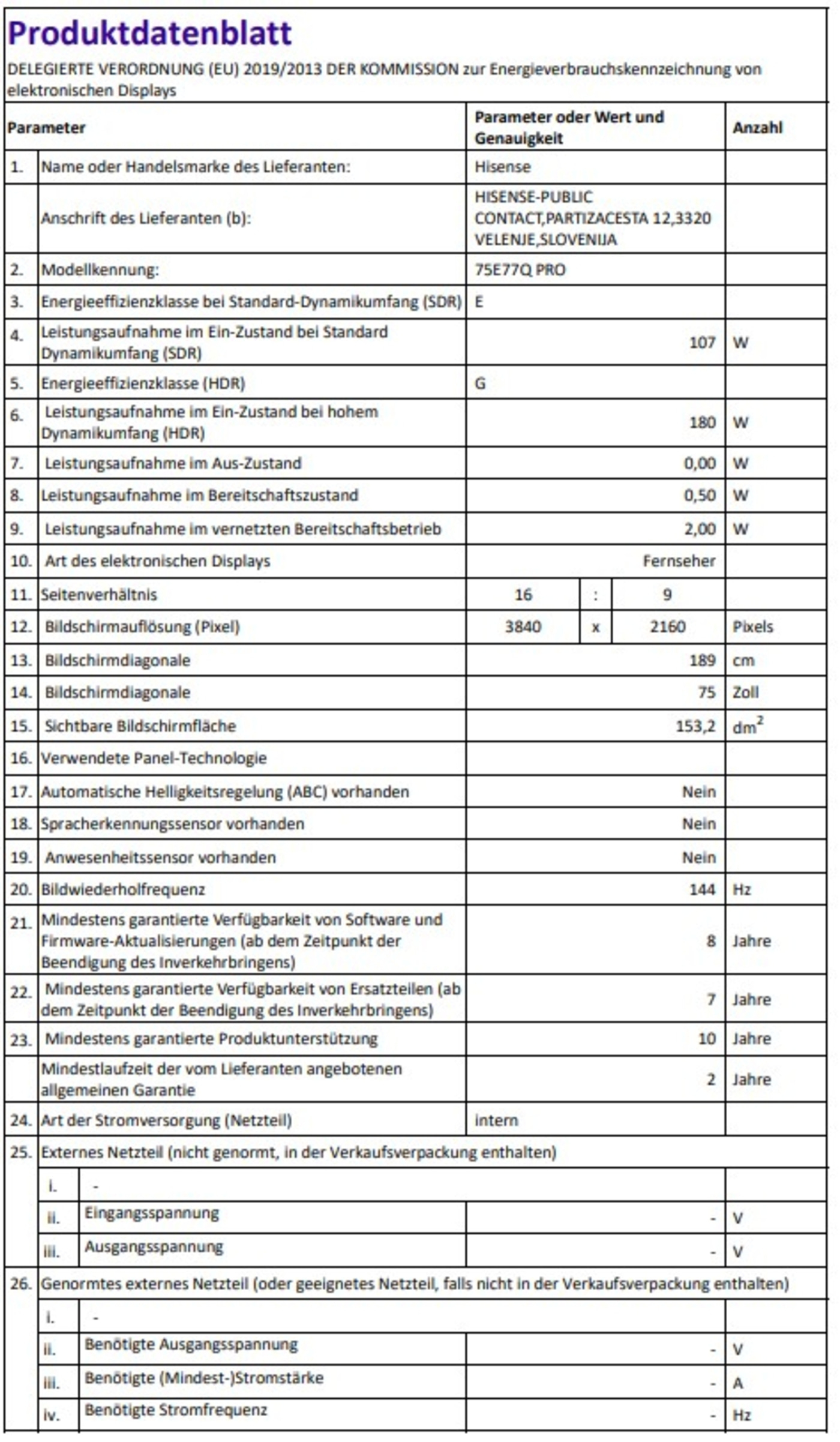 HISENSE TV 75E77Q PRO Fernseher 189 cm/75 Zoll 4K Ultra HD Smart-TV QLED B-WARE