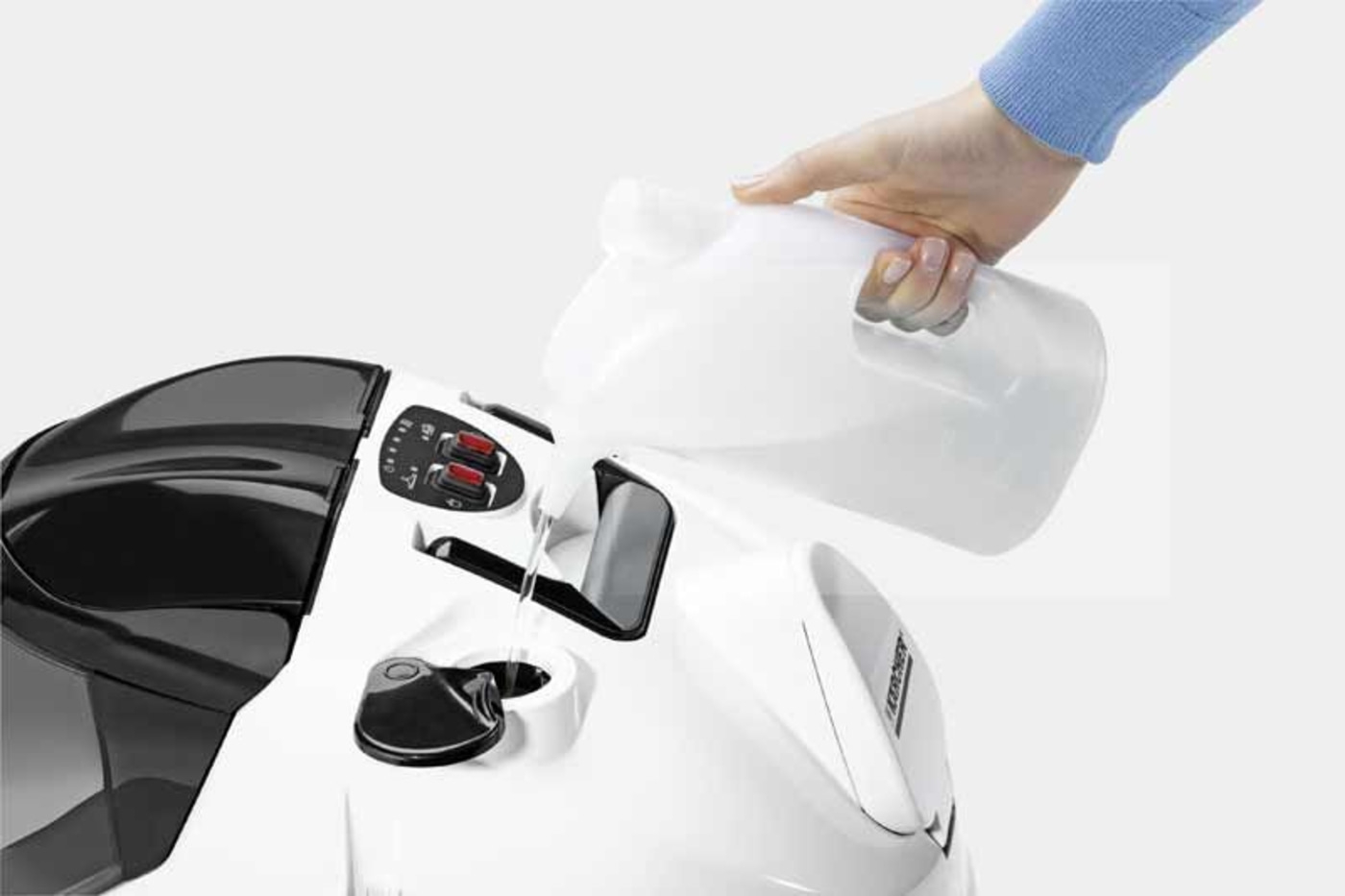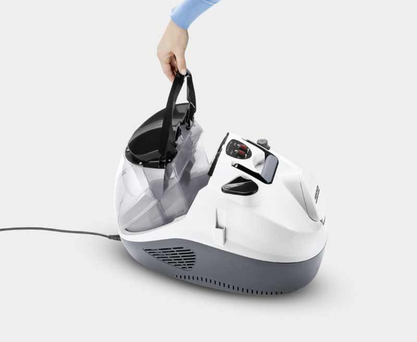 - Einfache Bedienung Die Saugleistung lässt sich über den Handgriff steuern und die Dampfmenge kann am Gerät reguliert werden.