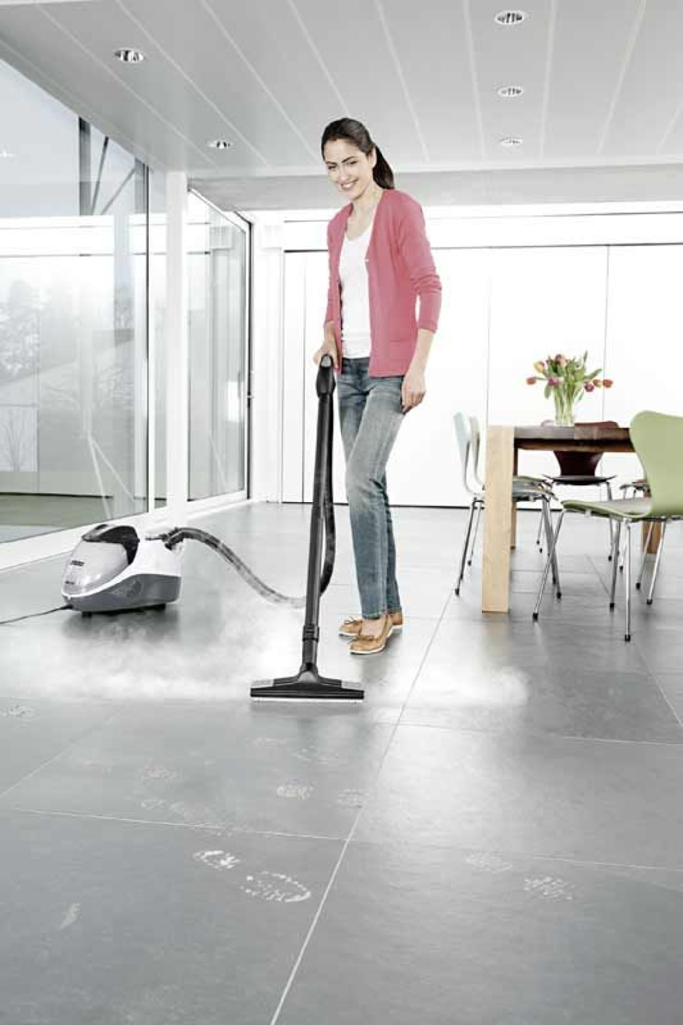 Der Dampfsauger SV 7 von Kärcher vereint die Vorteile von Dampfreinigern mit den Stärken von Trockensaugern. Er saugt zum Beispiel Krümel vom Boden, wischt feucht und trocknet den Boden abschließend sogar. Und das alles bequem in einem einzigen Arbeitsgang. Mit diesen überzeugenden Allround-Geräten und dem passenden Zubehör hat garantiert jeder seinen Haushalt sauber im Griff – einfach, bequem, schnell und ohne Chemie.