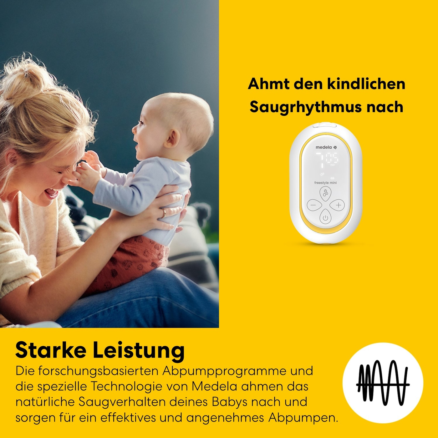 - 2-PHASE-EXPRESSION®-TECHNOLOGIE: Freestyle™ Mini ahmt den natürlichen Saugrhythmus des Babys nach – zunächst stimuliert sie den Milchfluss, gefolgt von einem langsamen Abpumpen der Milch.
