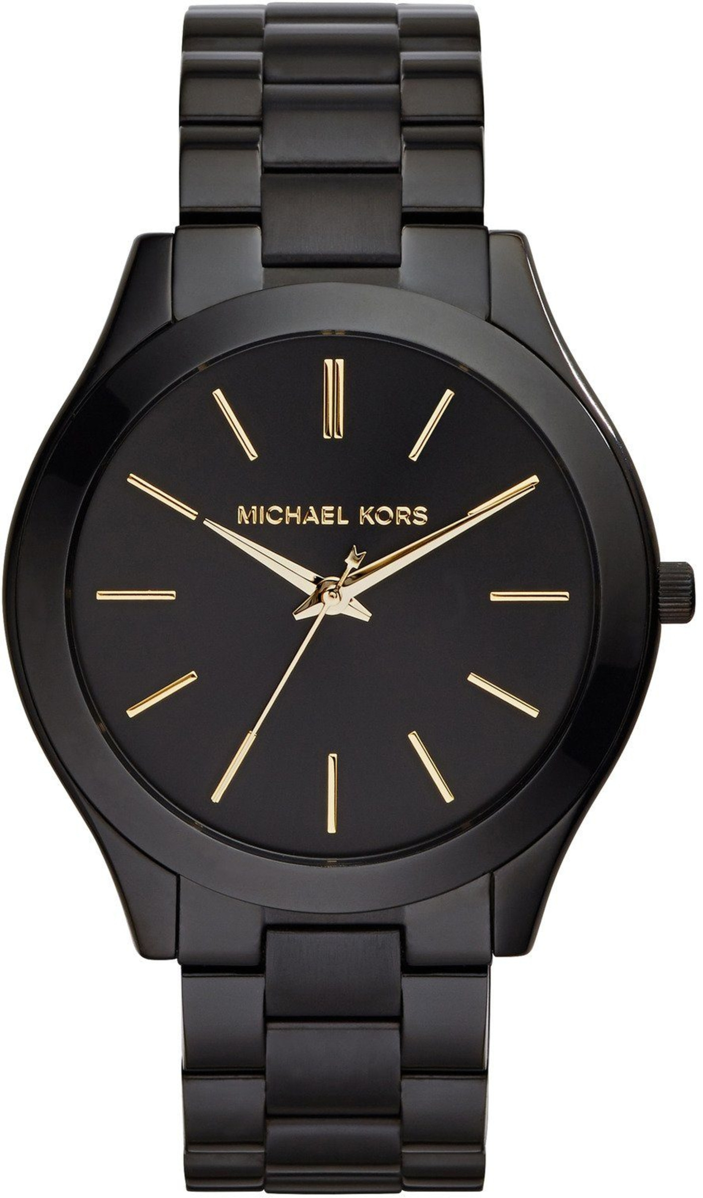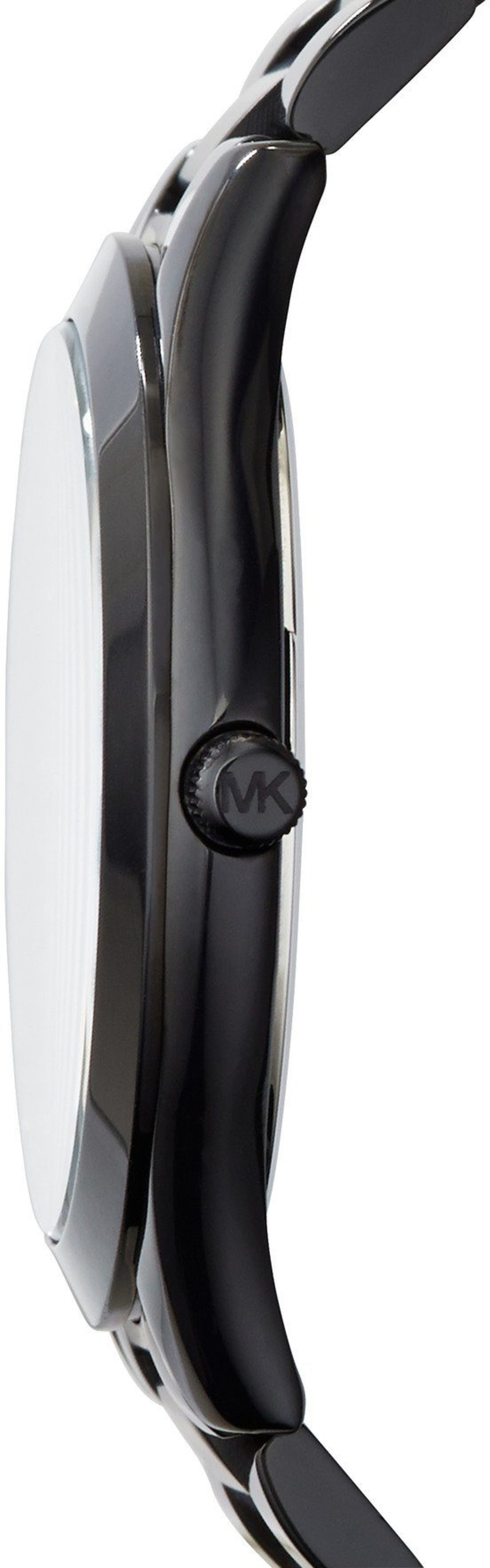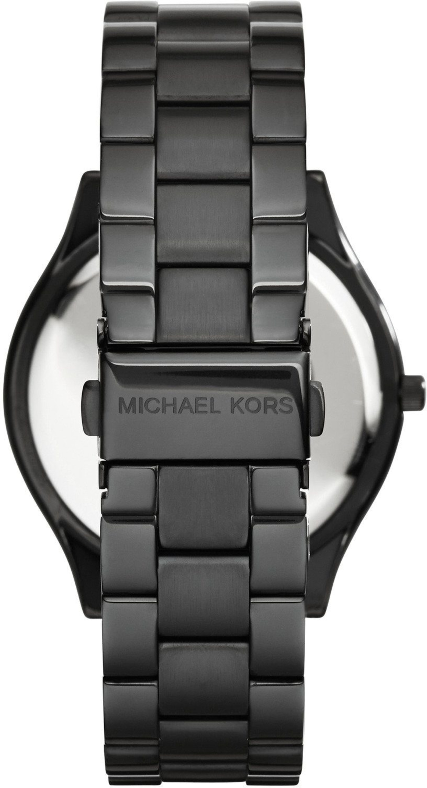 Diese klassische Michael Kors Uhr Slim Runway für jeden Tag ist aus schwarzem Edelstahl und hat ein 3-Zeiger-Werk.