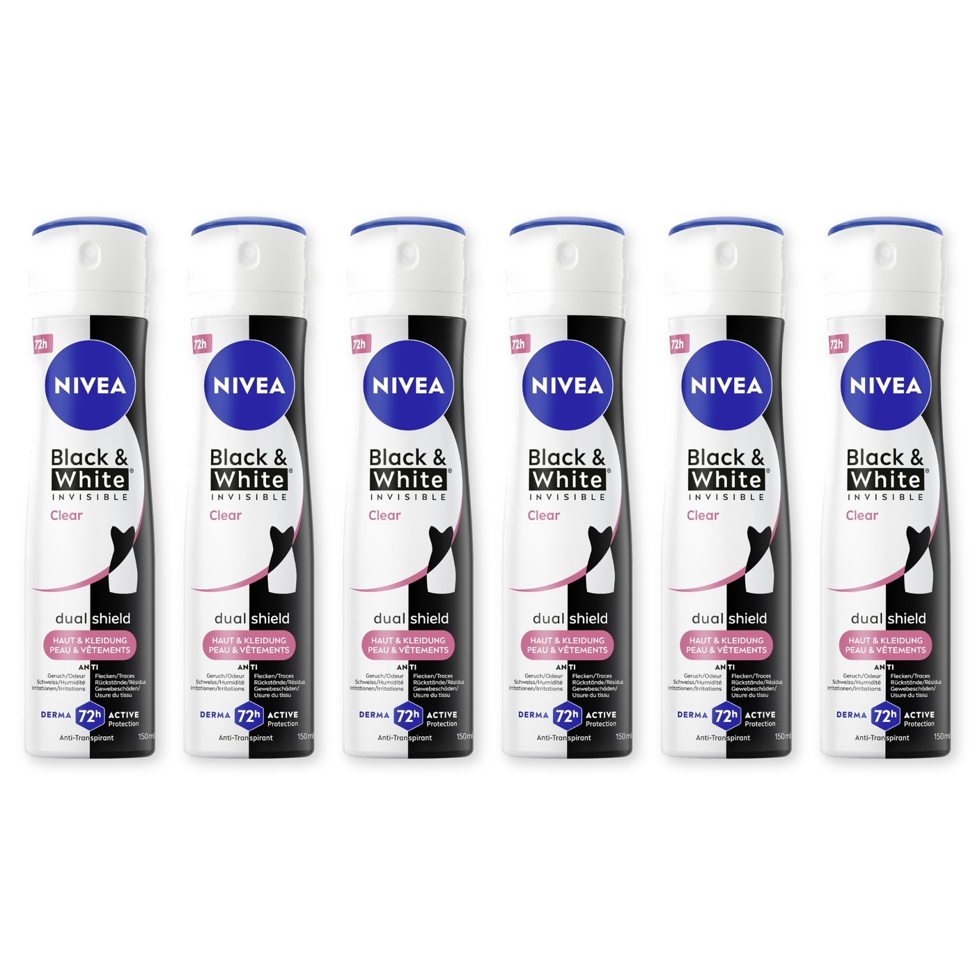 NIVEA Deodorant Black & White Invisible Clear Deo Spray 6 x 150ml