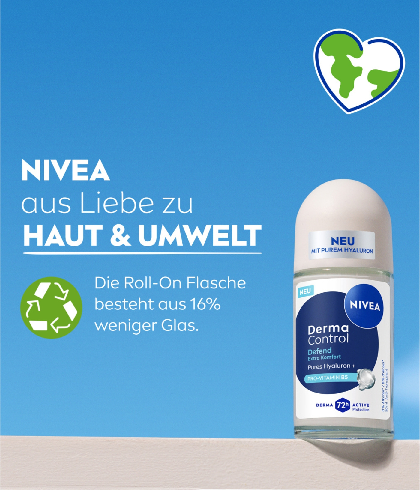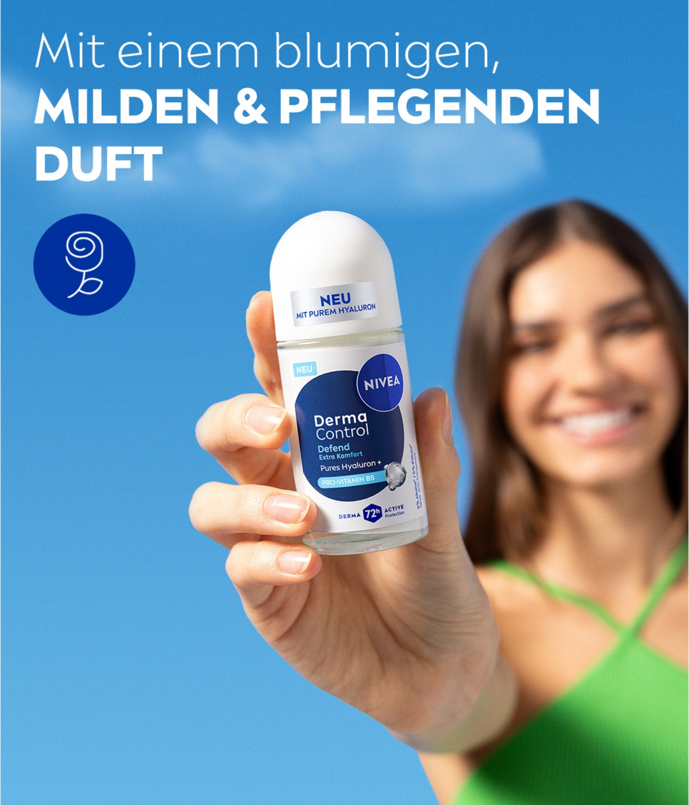 NIVEA Derma Control Defend Deo Roll-On mit purem Hyaluron und Pro-Vitamin B5 schützt die Haut vor Rasur-Irritationen und bietet 72h Schweiß- und Geruchsschutz für ein gesundes, weiches Hautgefühl.