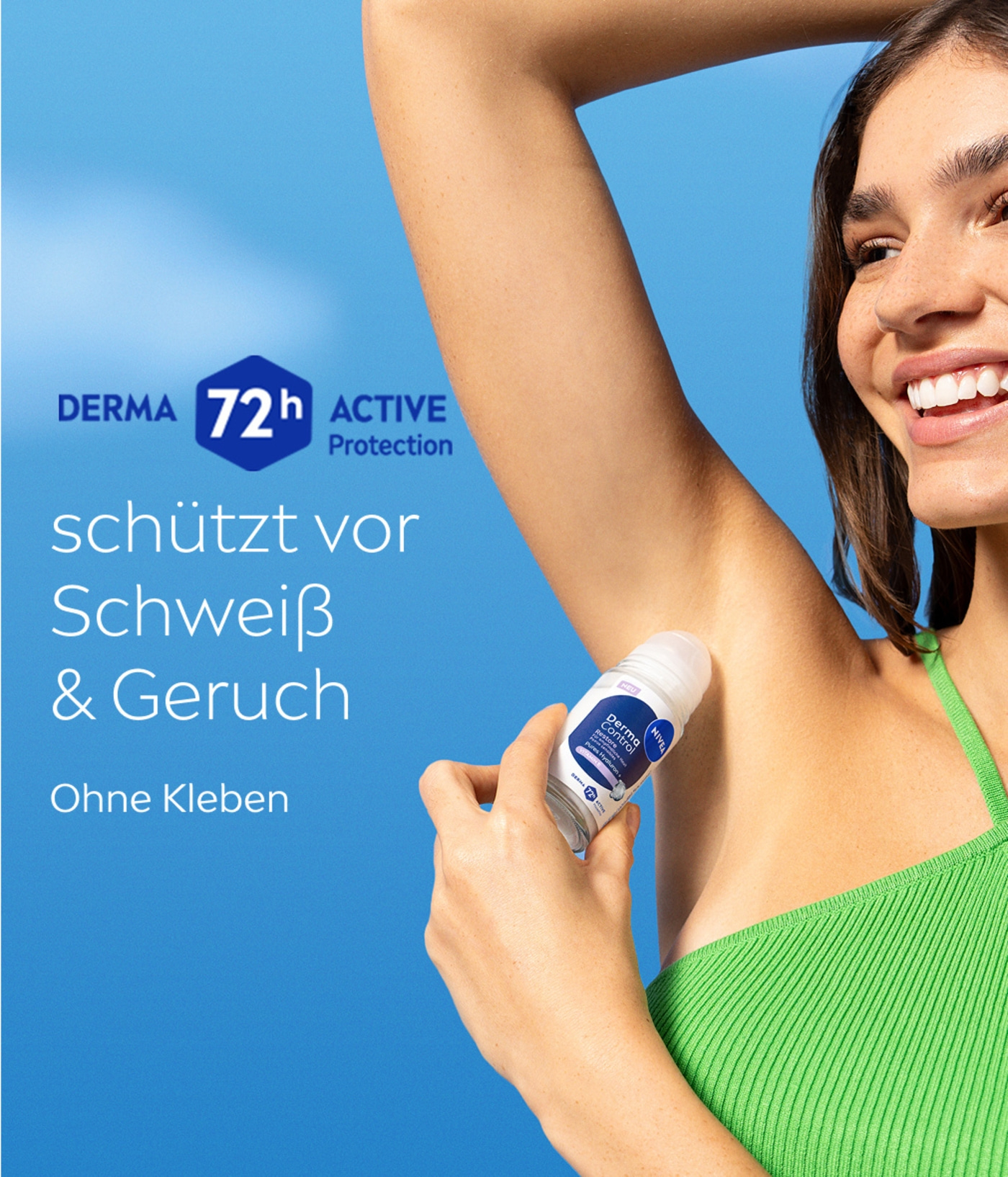 NIVEA Derma Control Restore Roll-On mit purem Hyaluron und Vitamin E beruhigt gereizte Haut nach der Rasur und bietet mit hypoallergenem Duft 72h Anti-Transpirant-Schutz vor Schweiß und Geruch.