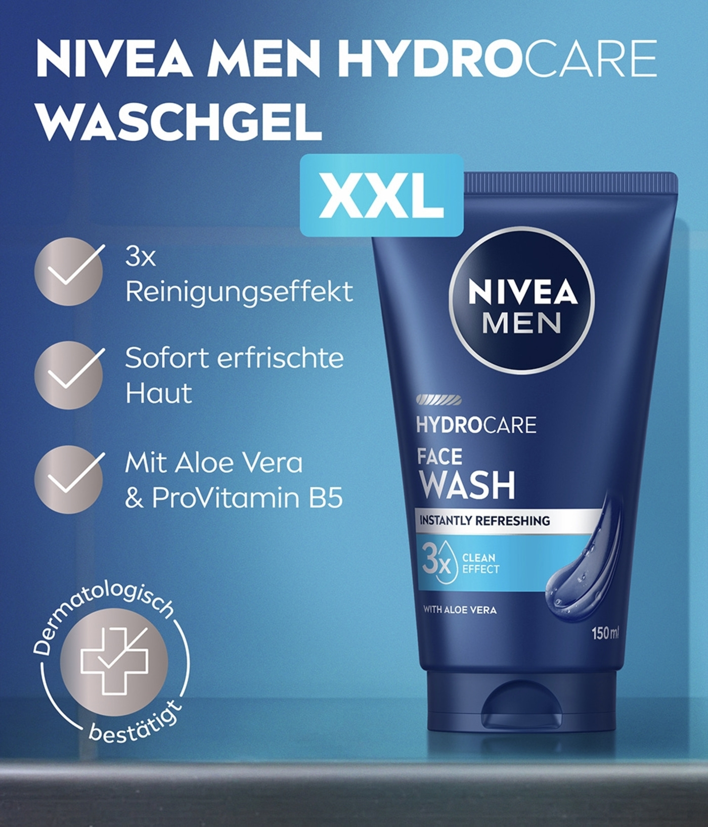 NIVEA MEN HydroCare Waschgel XXL 2 x 150ml Gesichtswaschgel