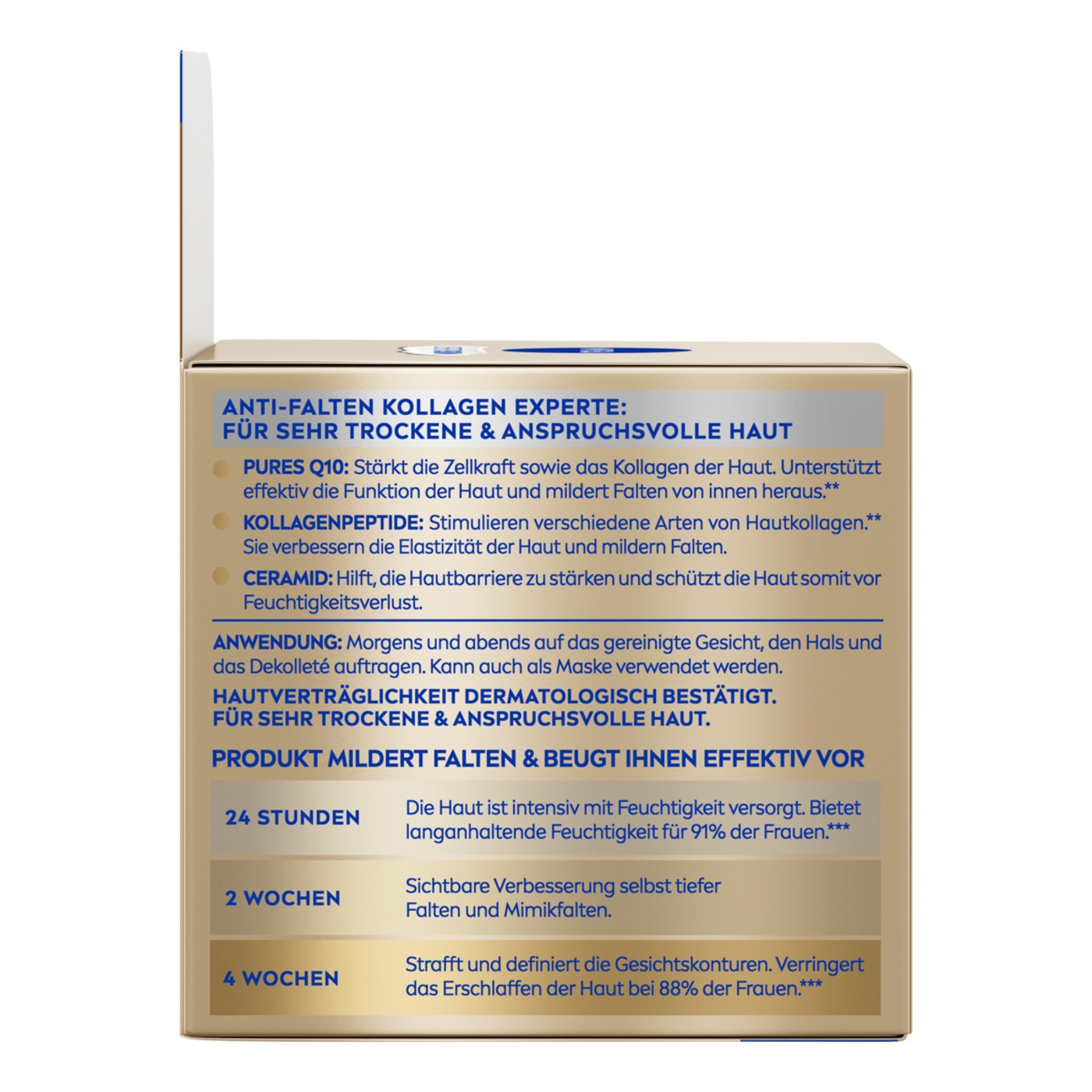 Q10 Anti-Falten Kollagen Experte FACIAL BUTTER TAG & NACHT ist formuliert, um die Haut tiefgehend zu pflegen, ihre reichhaltige, buttrige Textur zieht tief in die Haut ein, stärkt die Feuchtigkeitsbarriere der Haut.