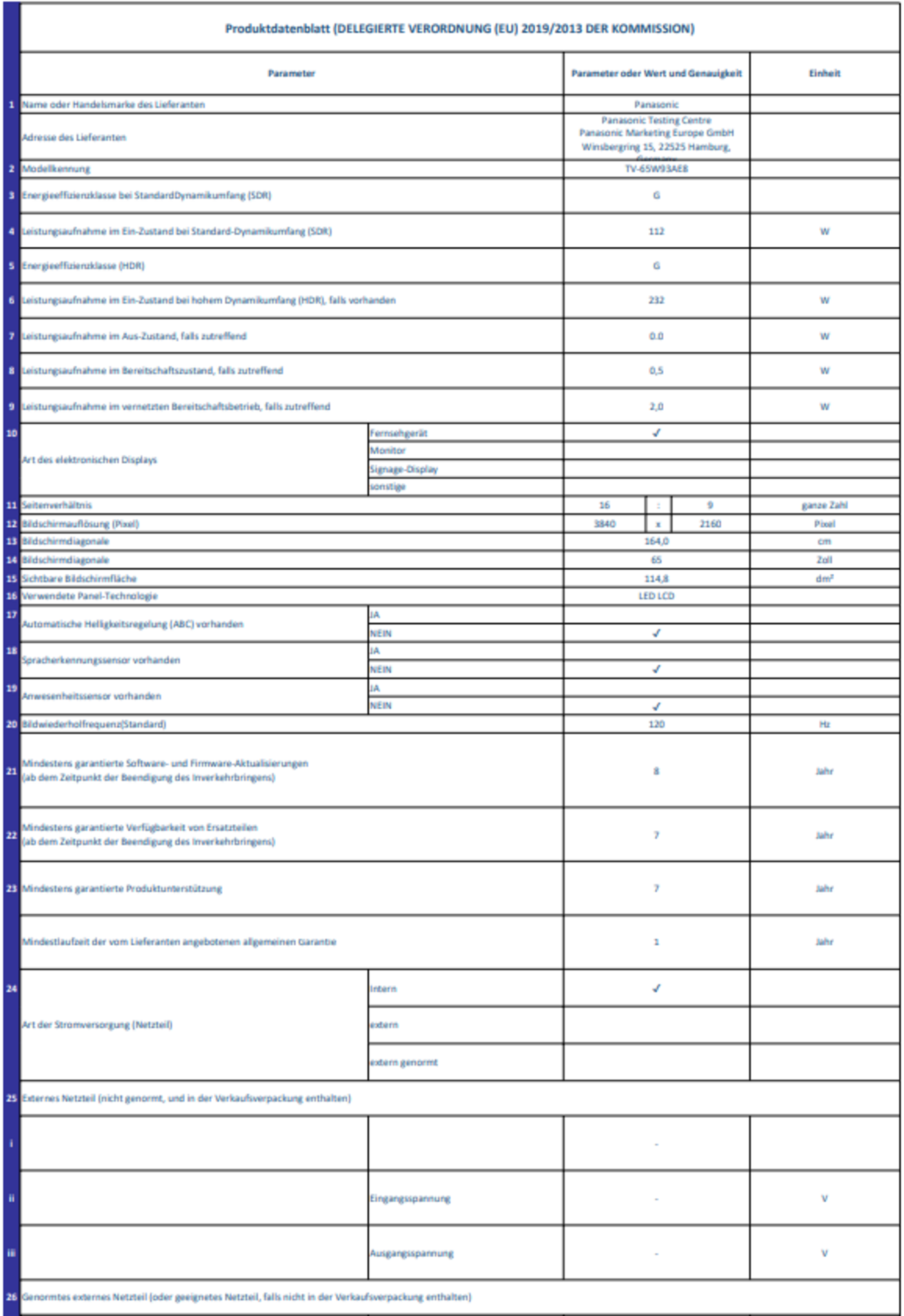 - SDR: 112 kWh/1000h: HDR: 232 kWh/1000h