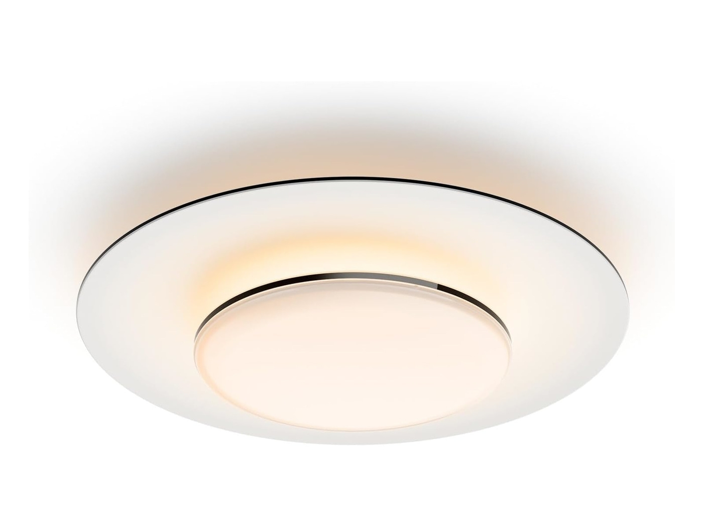- Warmweißes Licht: Mit einer Farbtemperatur von 2700 Kelvin und den zwei Lichtquellen sorgt die Deckenbeleuchtung für eine individuell einstellbare Atmosphäre im Raum