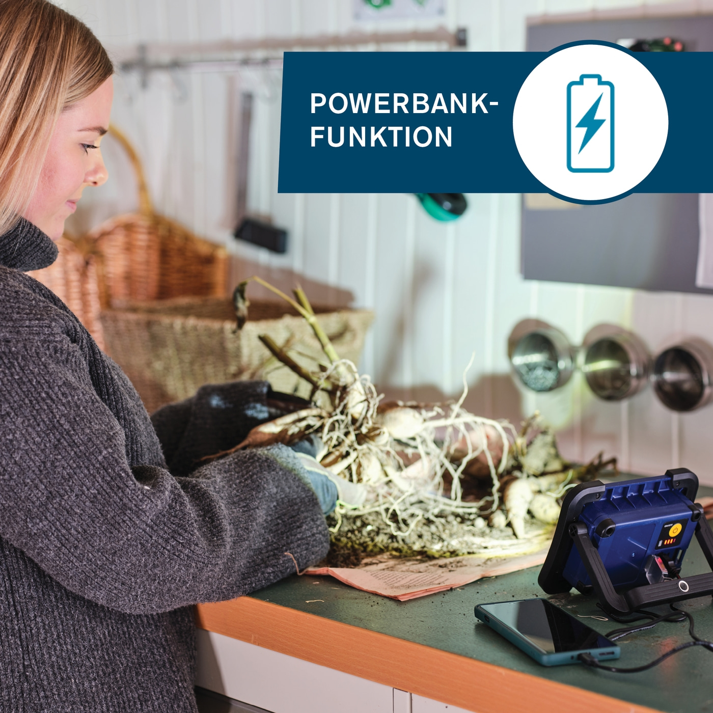 - Integrierte Powerbank-Funktion zum Laden mobiler Geräte.