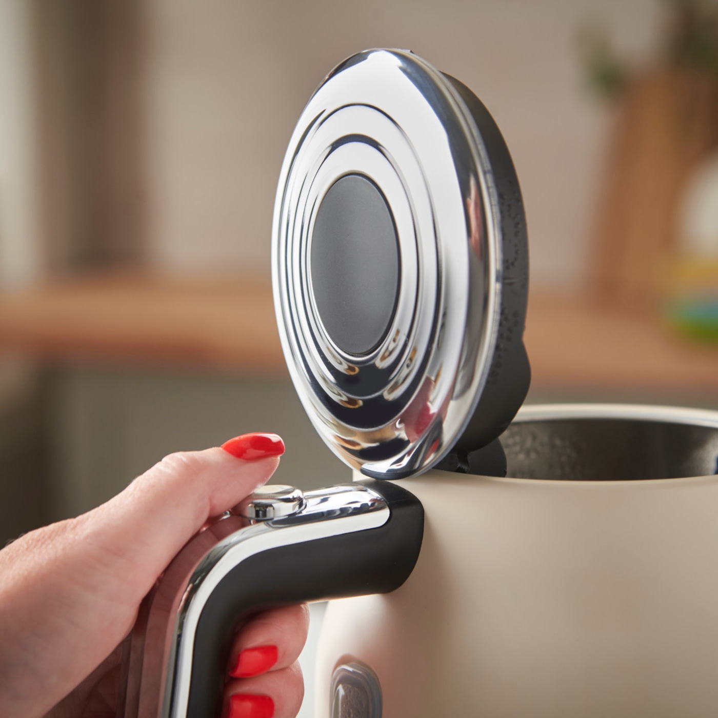 - DECKELÖFFNUNG PER KNOPFDRUCK - Durch einfaches Öffnen des Deckels per Knopfdruck am Griff kann der Wasserkocher direkt über den Wasserhahn befüllt werden.