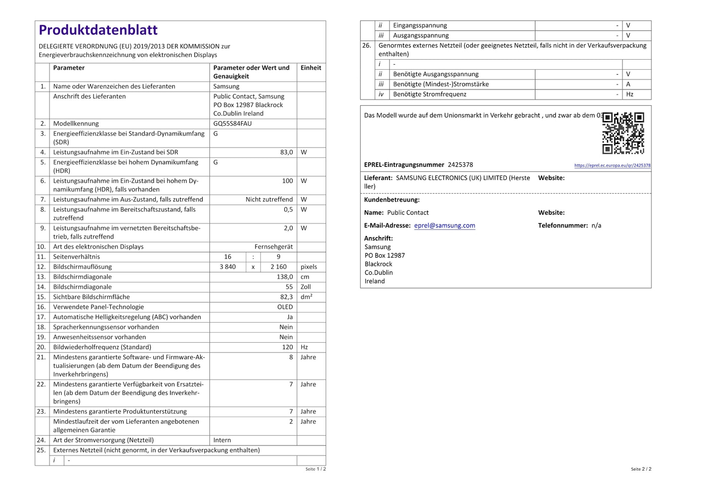 - Modellbezeichnung: GQ55S84FAU