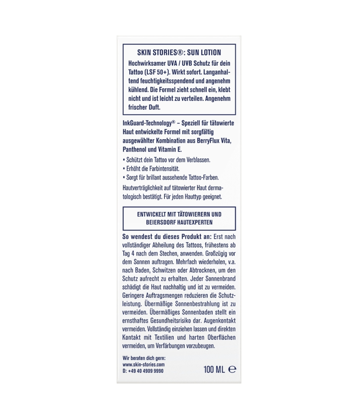 - Sehr hoher Tattoo-Sonnenschutz mit LSF 50+
