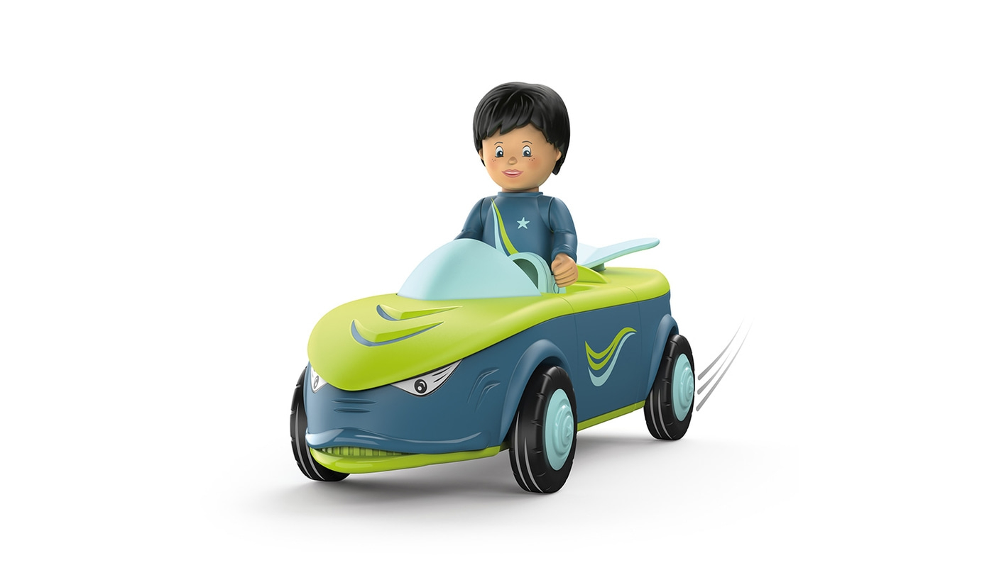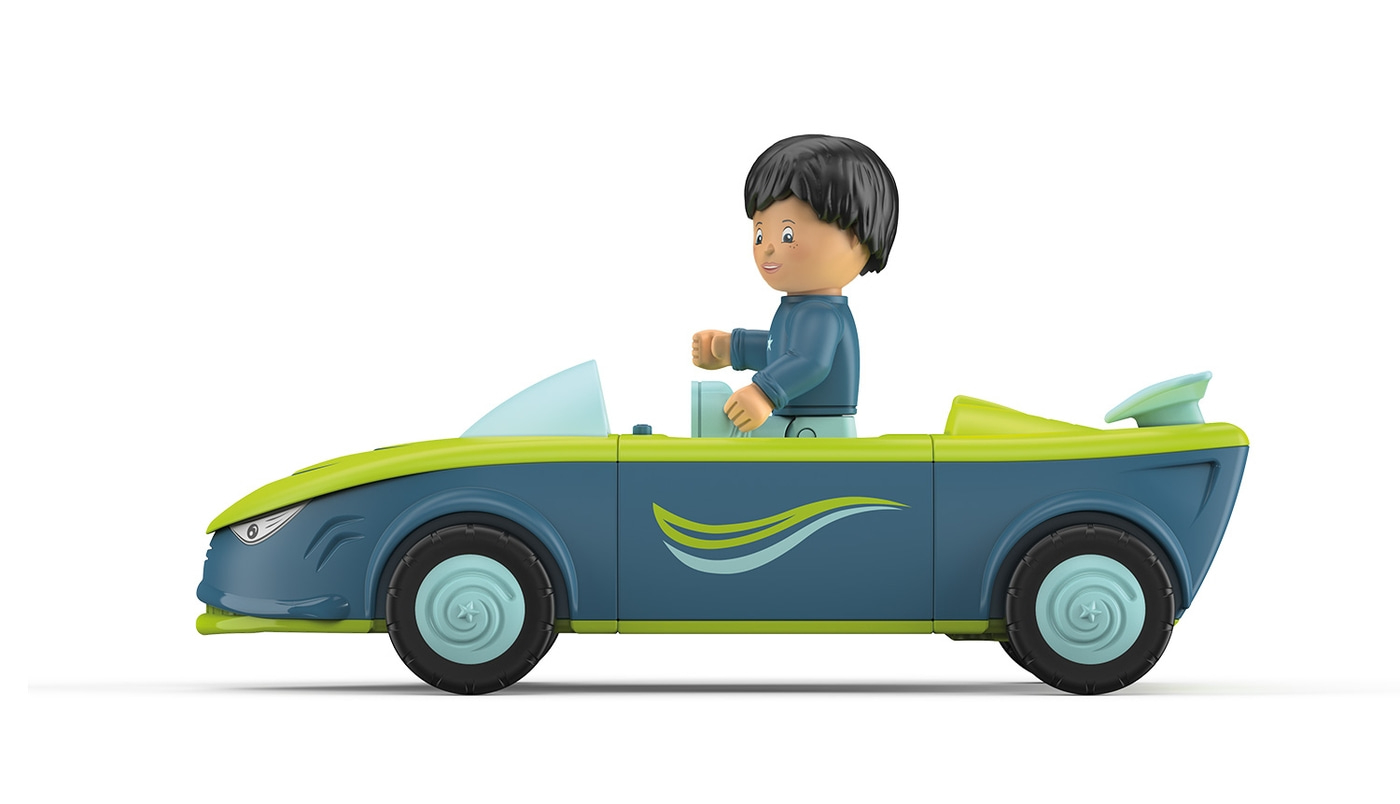- Bewegliche Spielfigur Dave und 3-teiliges Fahrzeug Divey