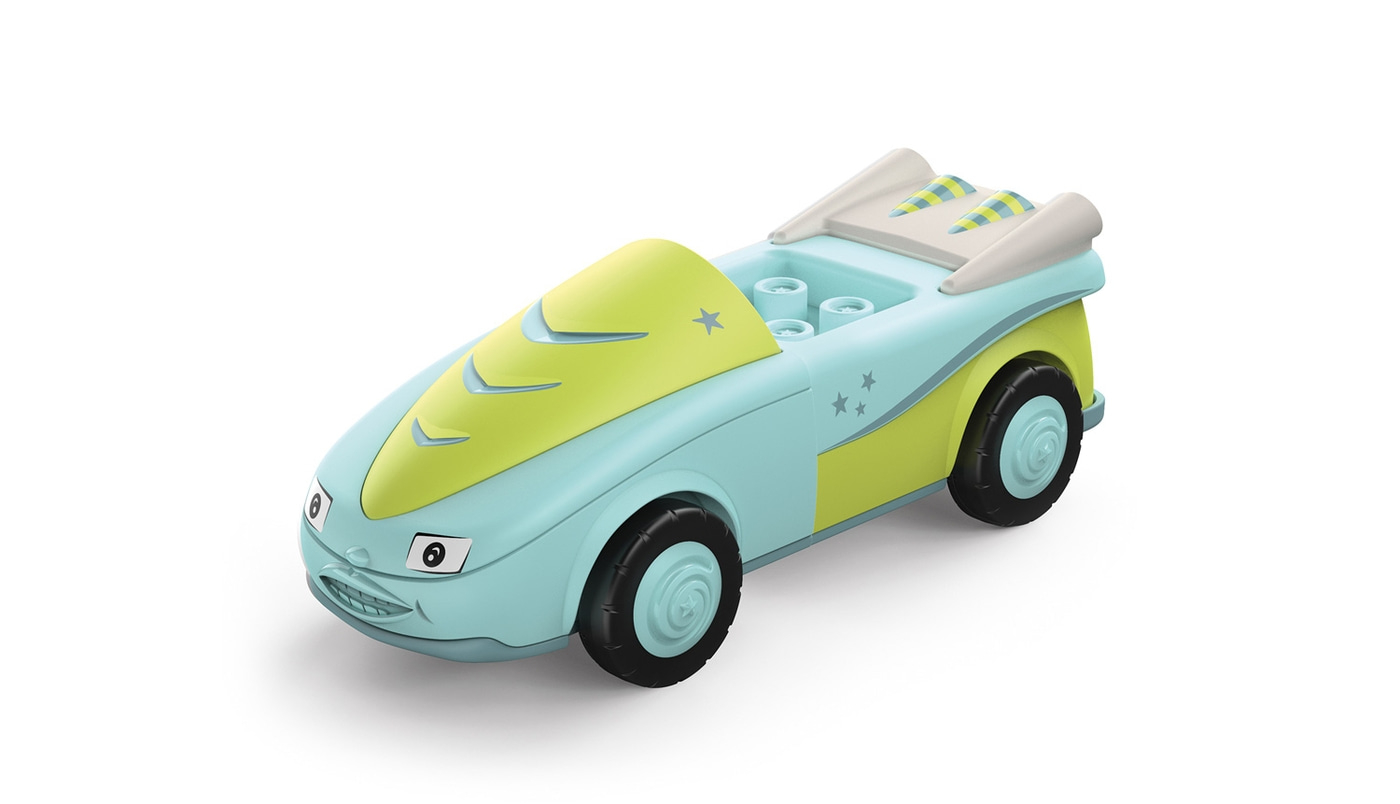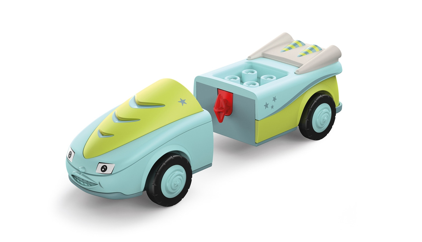 - Bewegliche Spielfigur Freddy und 2-teiliges Fahrzeug Fluxy
